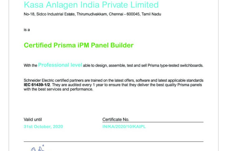 It is with great pleasure that we announce to you our recent partnership with Schneider Electric for the Prisma Range of LT Panels. Prisma is an international range of IEC61439-1 & 2 certified functional LT boards from the stable of Schneider Electric. Prisma has an elegant 2 door design and over 12 type tests have been conducted successfully.